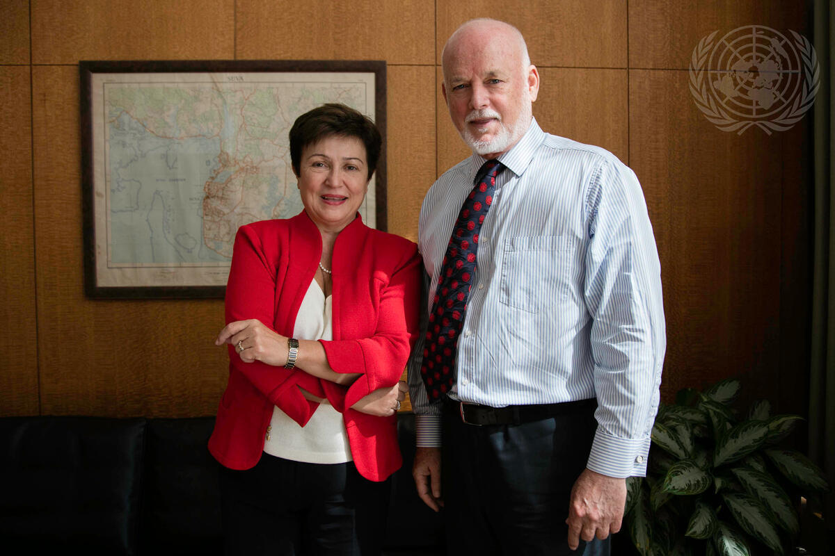 Peter Thomson (right), President of the seventy-first session of the General Assembly, meets with Kristalina Georgieva, Vice President for Budget and Human Resources of the European Commission.