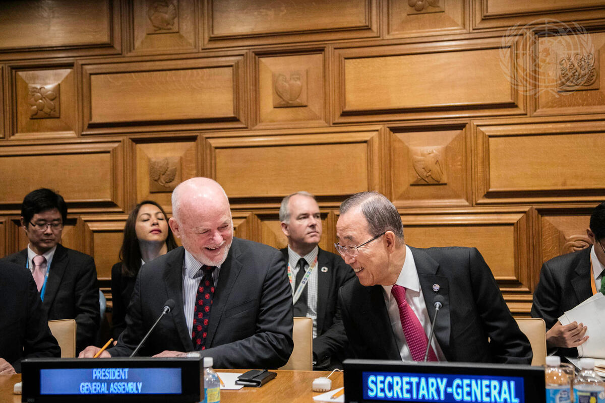 Peter Thomson (left), President of the General Assembly's seventy-first session, and Secretary-General Ban Ki-moon at the Association of Southeast Asian Nations-United Nations (ASEAN-UN) ministerial meeting.