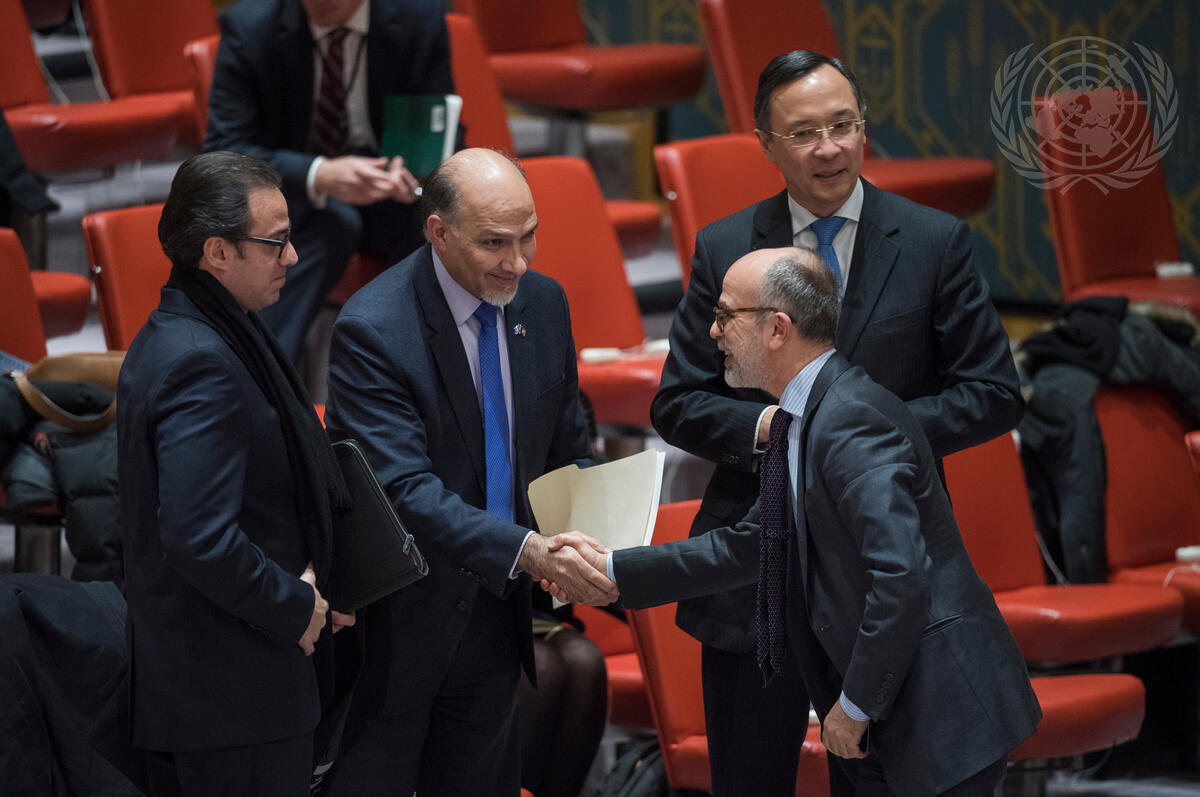 Mahmoud Saikal (second from left), Permanent Representative of Afghanistan to the UN, at the Security Council meeting on the situation in his country.