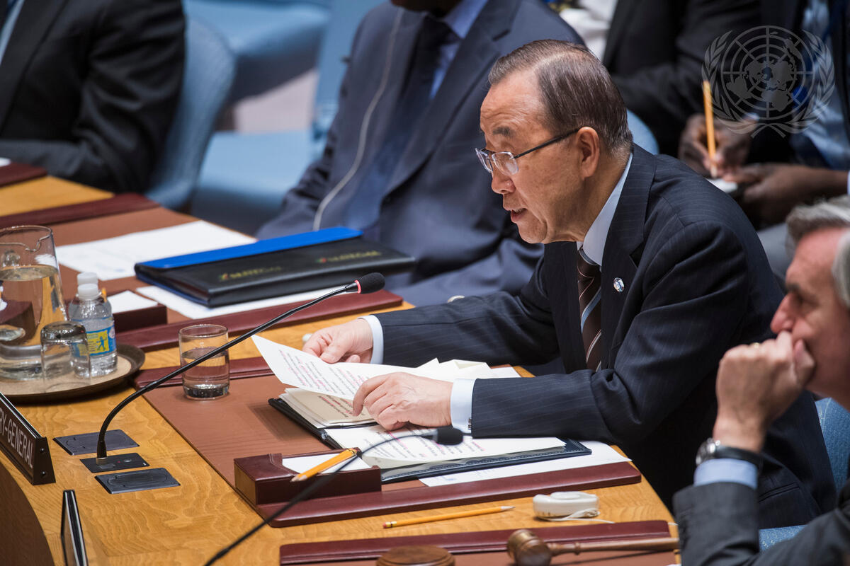 Secretary-General Ban Ki-moon briefs the Security Council during a meeting on the situation in Sudan and South Sudan.