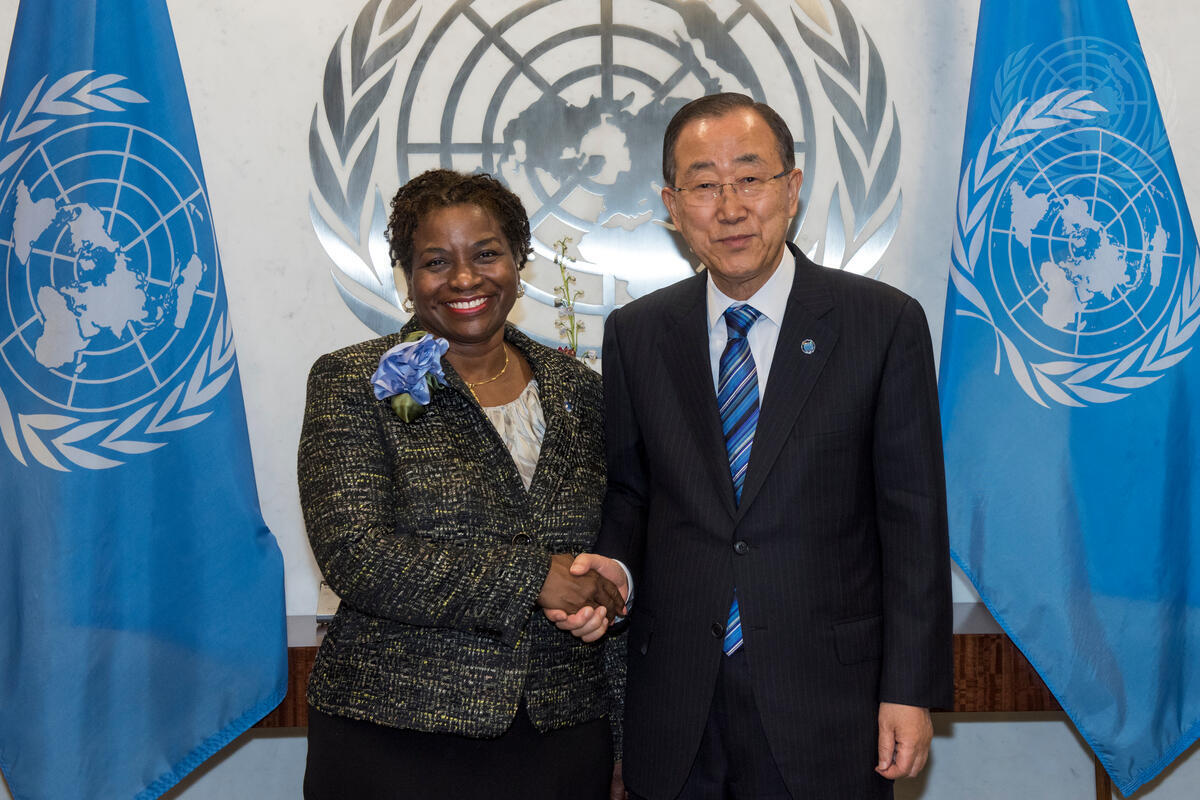 Secretary-General Ban Ki-moon (right) with Natalia Kanem, newly sworn -in Assistant Secretary-General and Deputy Executive Director for the United Nations Population Fund.