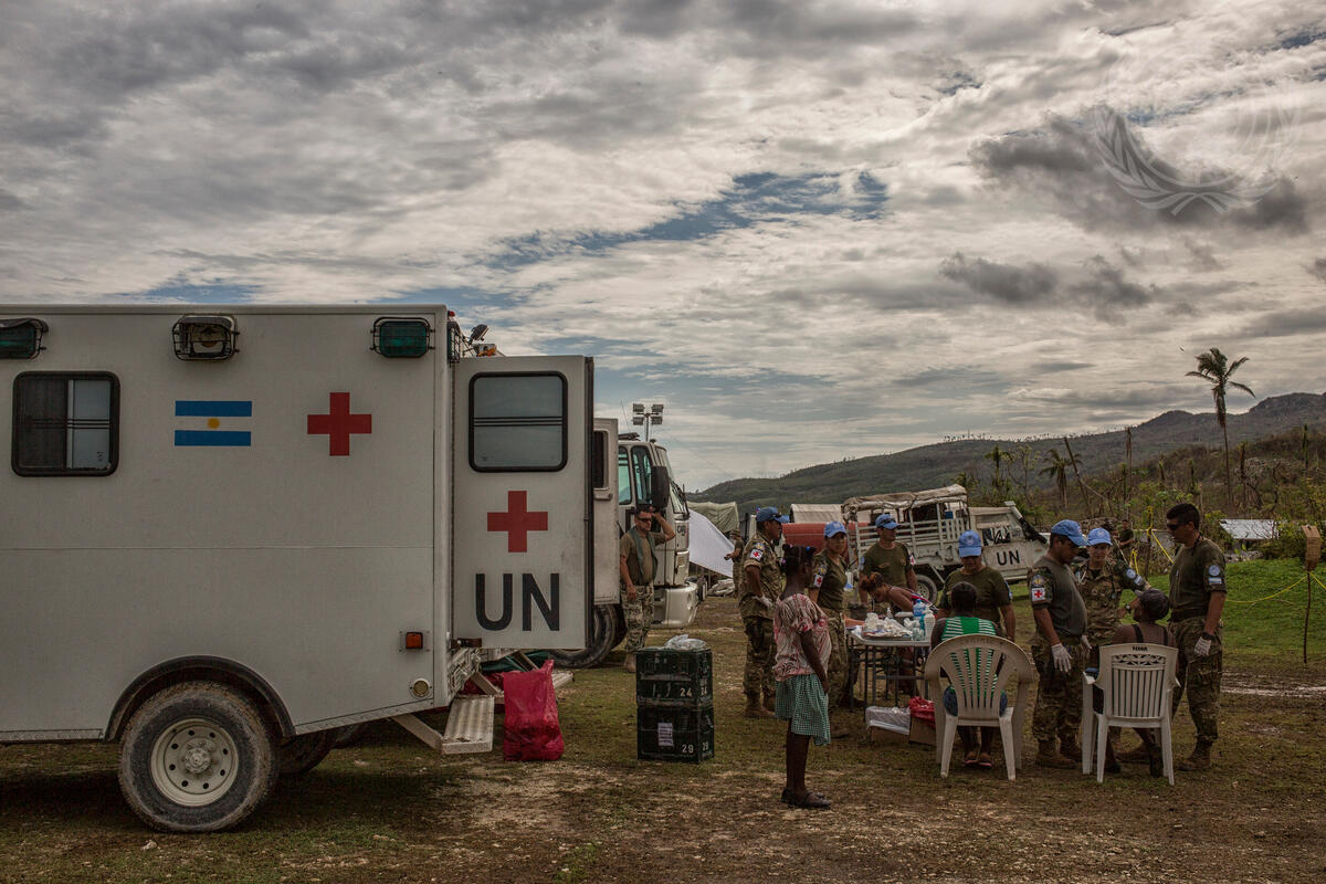 Argentinian peacekeepers with the United Nations Mission in Haiti (MINUSTAH) administer medical aid to residents of Les Cayes affected by Hurricane Matthew.