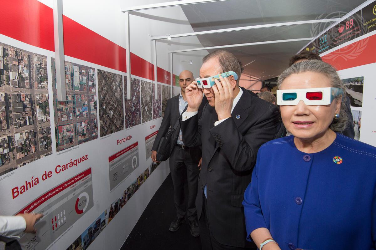 Secretary-General Ban Ki-moon (left) visits the Ecuador Pavilion with his wife, Yoo Soon-taek. The pavilion is part of Habitat III, the United Nations Conference on Housing and Sustainable Urban Development, in Quito, Ecuador.