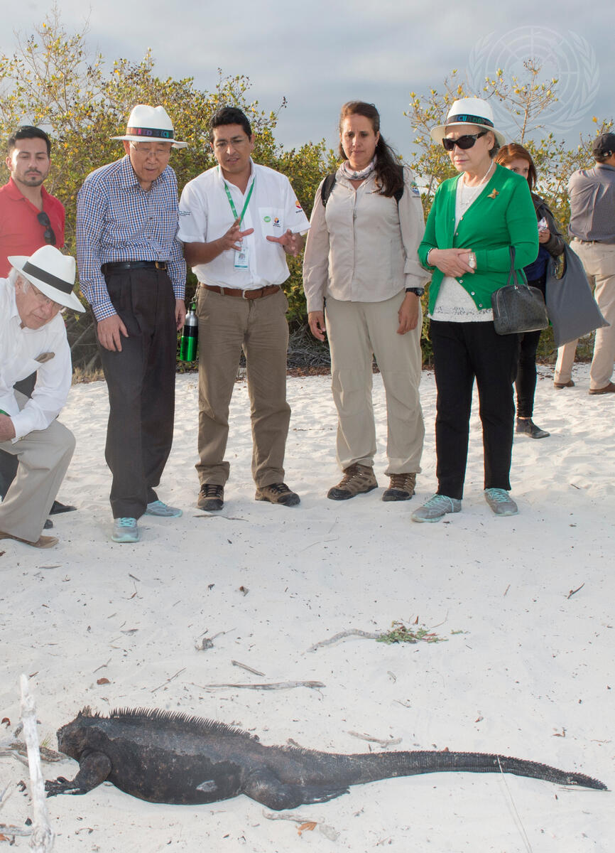 Secretary-General Ban Ki-moon (centre left) and his wife Yoo Soon-taek, visit Turtle Bay (Santa Cruz Island) in the Galapagos.