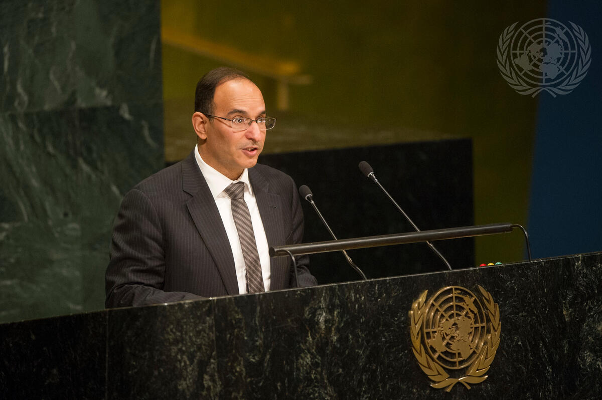 On behalf of the Asia Pacific States, Mansour Ayyad SH A Alotaibi, Permanent Representative of the State of Kuwait to the United Nations, addresses the thirtieth plenary meeting of the seventy-first session of the General Assembly on the implementation of human rights instruments: commemoration of the fiftieth anniversary of the adoption of the International Covenant on Civil and Political Rights and the International Covenant on Economic, Social and Cultural Rights.