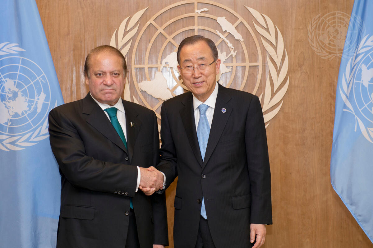 Secretary-General Ban Ki-moon (right) meets with Muhammad Nawaz Sharif, Prime Minister of Pakistan.