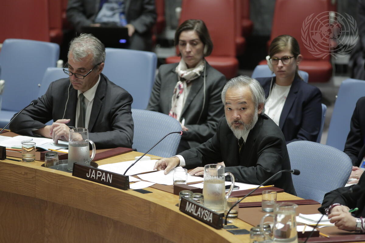 Yoshifumi Okamura, Deputy Permanent Representative of Japan to the UN, addresses the Council.