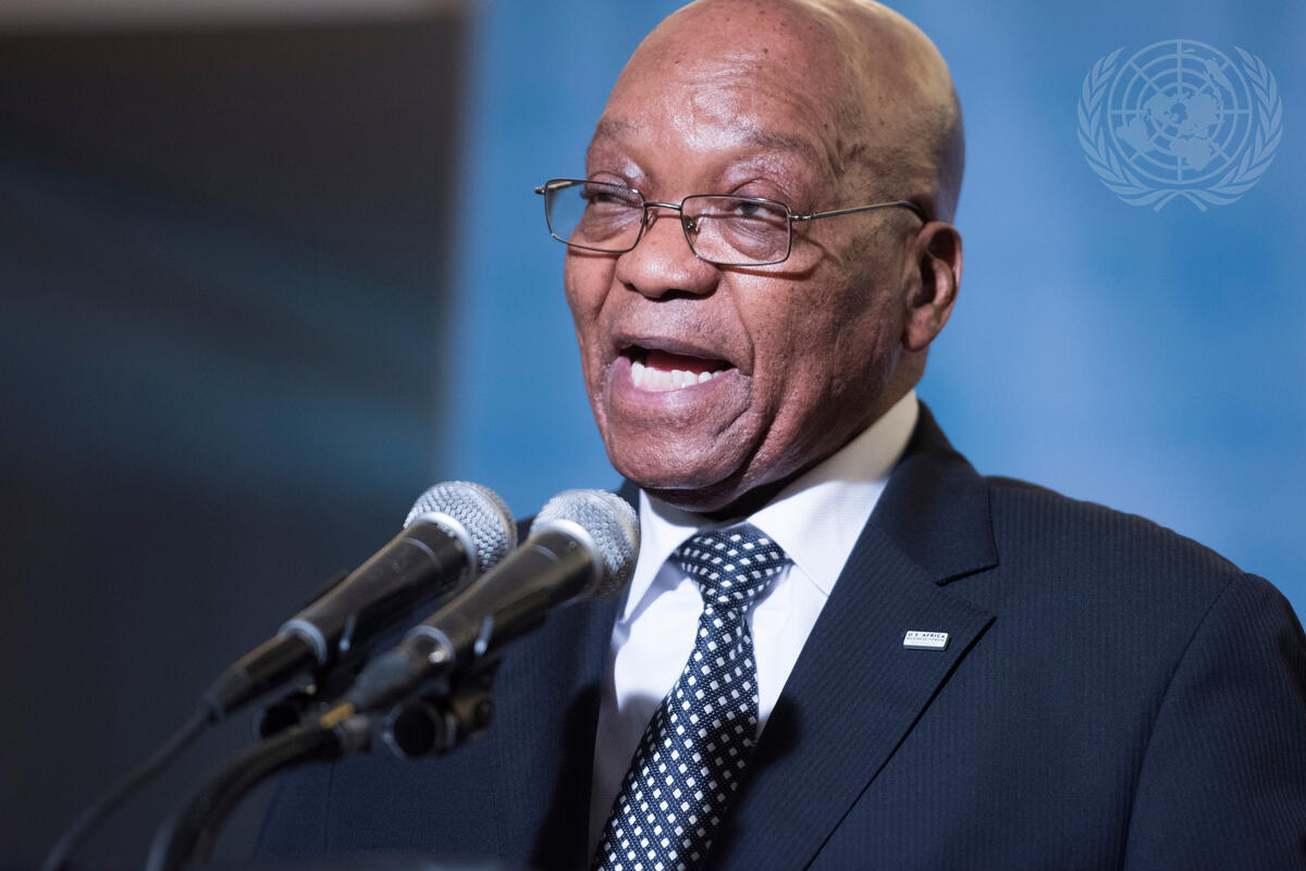 Jacob Zuma, President of the Republic of South Africa, briefs journalists following a meeting of the High Level Panel on Water.
