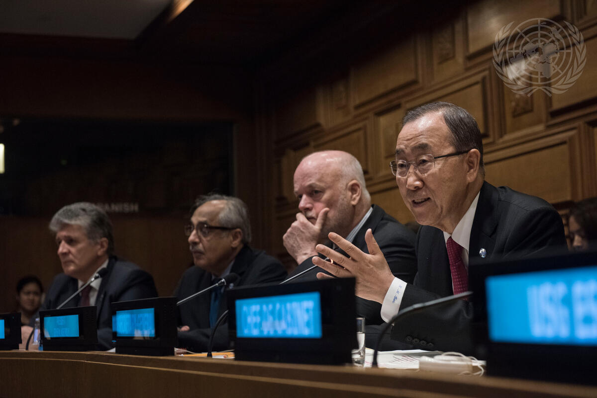 Secretary-General Ban Ki-moon (right) addresses the Association of Southeast Asian Nations-United Nations (ASEAN-UN) ministerial meeting. Also at the podium is Peter Thomson (left), President of the seventy-first session of the General Assembly.