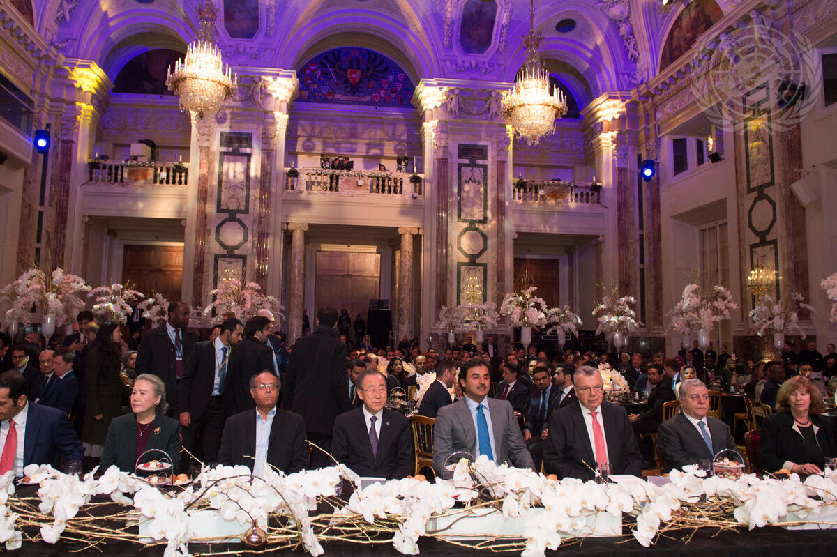 The Secretary-General (centre left) and the Amir of Qatar (centre right) during the award ceremony. Also pictured: Mr. Ban’s wife, Yoo Soon-taek (second from left) and Mr. Fedotov (third from right).