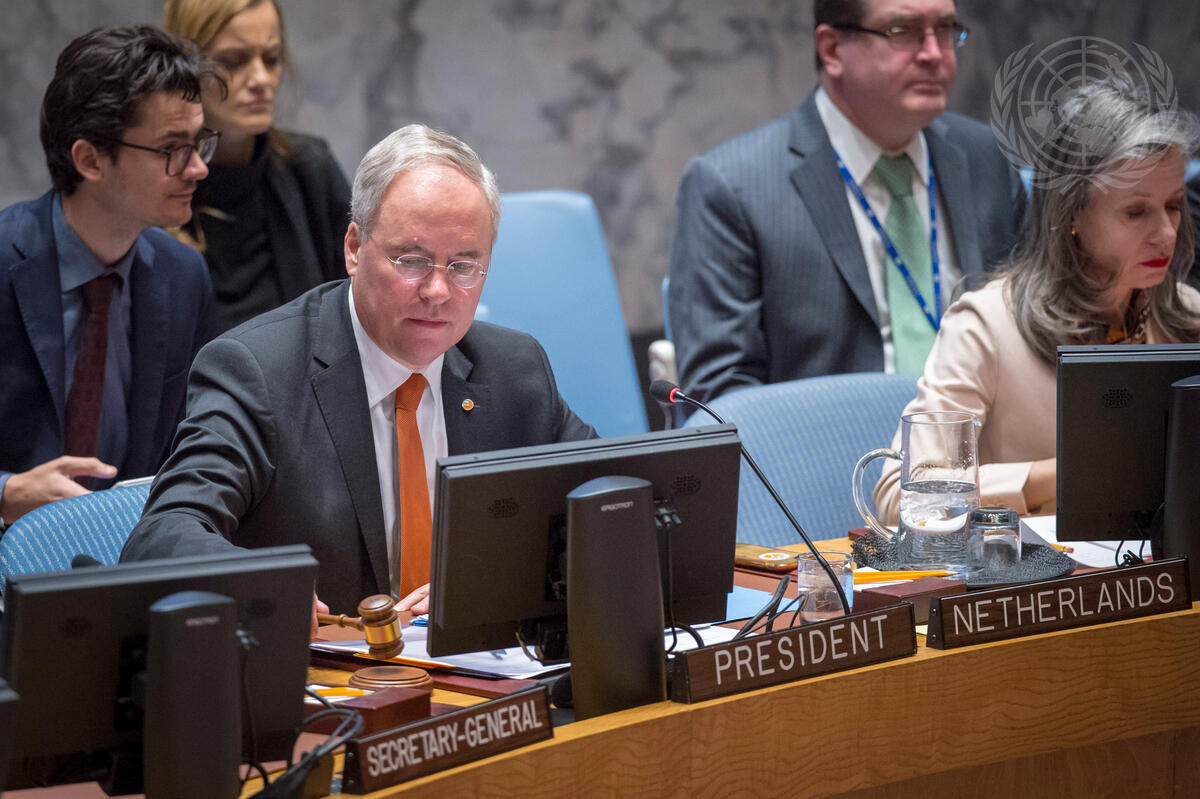 Karel van Oosterom, Permanent Representative of the Netherlands to the UN and President of the Security Council for the month of March, chairs the Security Council meeting on the situation in Sudan and South Sudan.