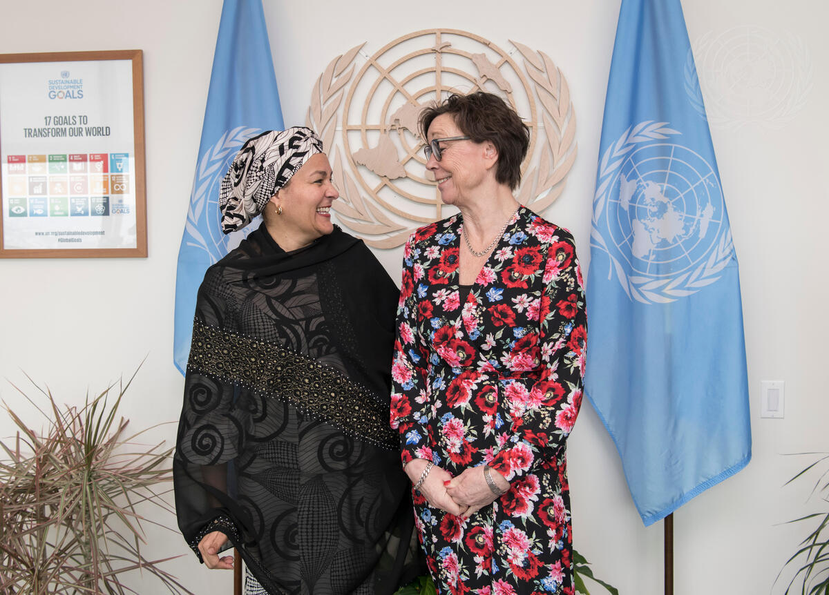 Deputy Secretary-General Amina Mohammed (left) meets with Annika Söder, State Secretary of Foreign Affairs of Sweden.