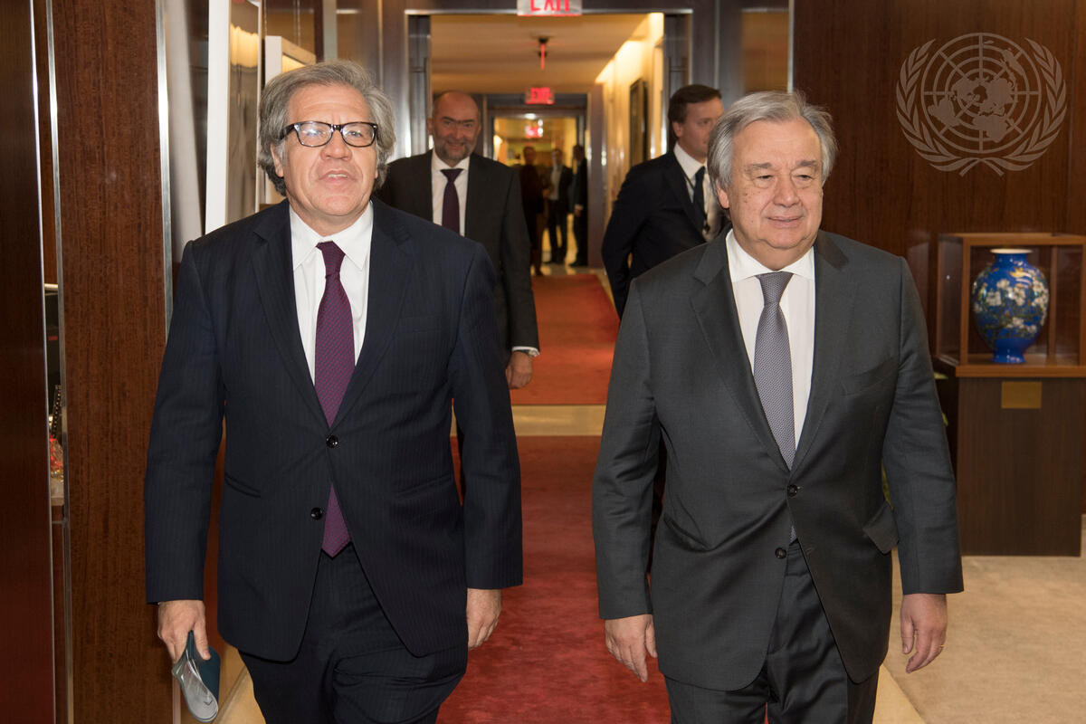 Secretary-General António Guterres (right) meets with Luis Almagro, Secretary-General of the Organization of American States (OAS).