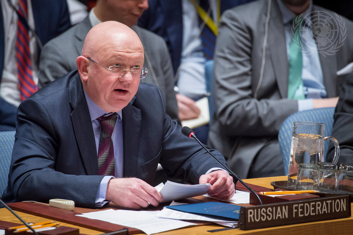 Vassily Nebenzia, Permanent Representative of the Russian Federation to the United Nations, addresses the Security Council meeting considering the letter dated 13 March 2018 from the Permanent Mission of the United Kingdom of Great Britain and Northern Ireland to the United Nations.