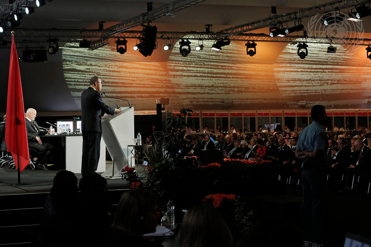 Secretary-General Ban Ki-moon speaks at the high-level segment of COP 22 and the first session of the Conference of the Parties to the Paris Agreement, in Marrakech, Morocco.