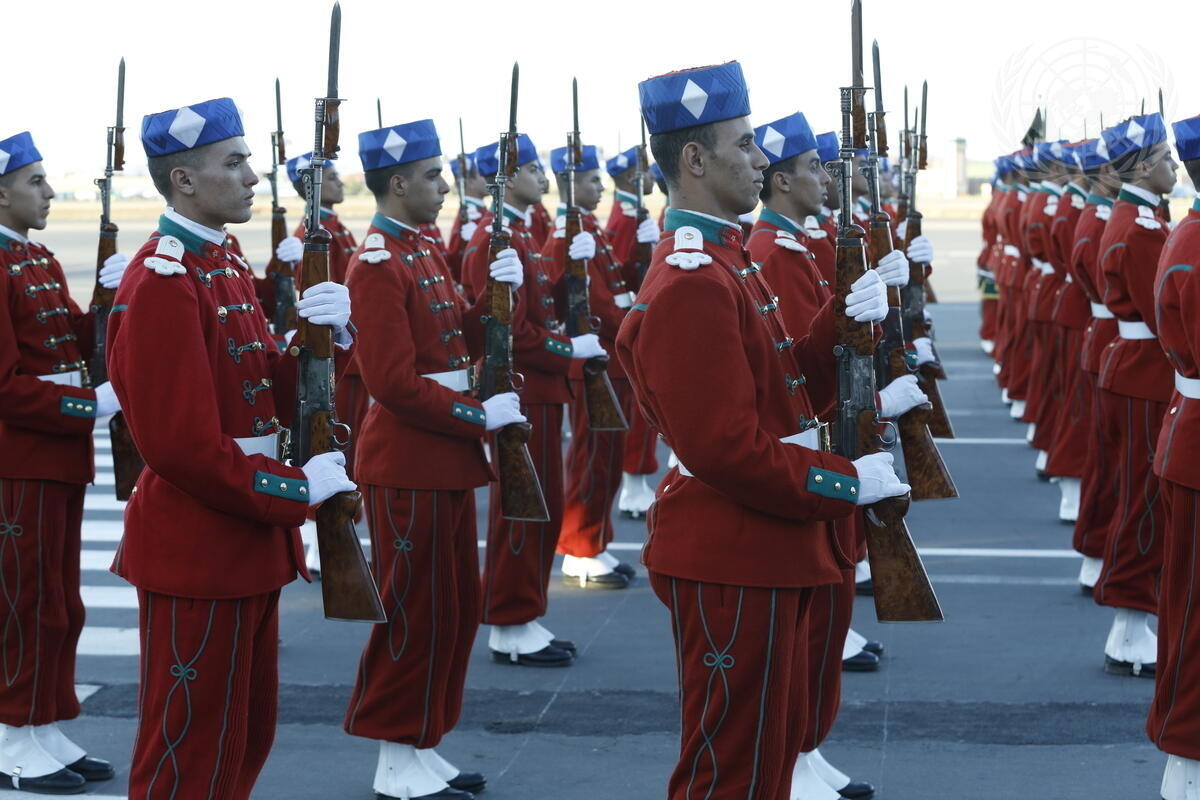 Moroccan Royal Guard at Menara Airport in Marrakech, Morocco, where United Nations Secretary-General Ban Ki-moon will press for the implementation of the Paris Agreement on Climate Change.