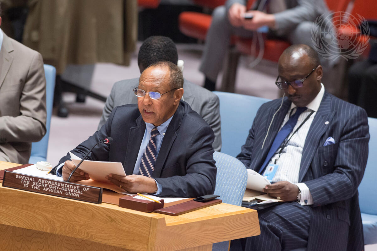 Haile Menkerios (at table), Special Representative of the Secretary-General to the African Union, briefs the Security Council on cooperation between the United Nations and the African Union in the area of peace and security.