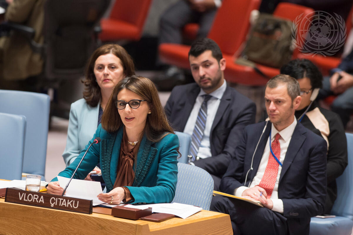 Vlora Çitaku, Representative of the Kosovo authorities, addresses the Security Council meeting on Kosovo.