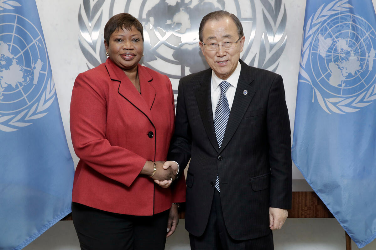 Secretary-General Ban Ki-moon (right) meets with Fatou Bensouda, Chief Prosecutor of the International Criminal Court.