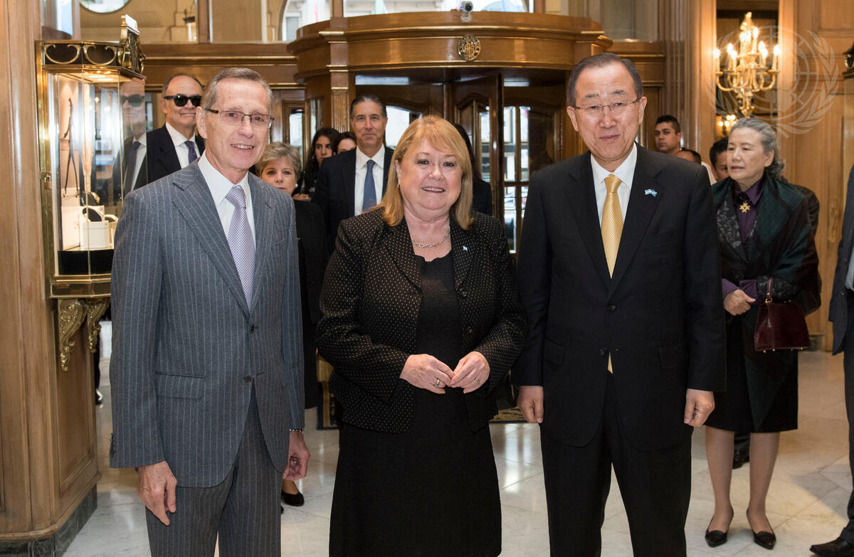 Mr. Ban (foreground right) with Susana Malcorra (centre), Minister for Foreign Affairs of Argentina; and Adalberto Rodríguez Giavarini, President of CARI and former Minister for Foreign Affairs of Argentina, on the occasion. Also pictured, the Secretary-General’s wife, Yoo Soon-taek (background right).