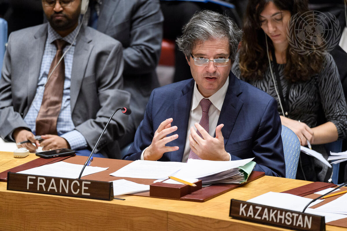 François Delattre, Permanent Representative of France to the United Nations, addresses the Security Council meeting on threats to international peace and security in relation to the situation in the Middle East, specifically Syria.