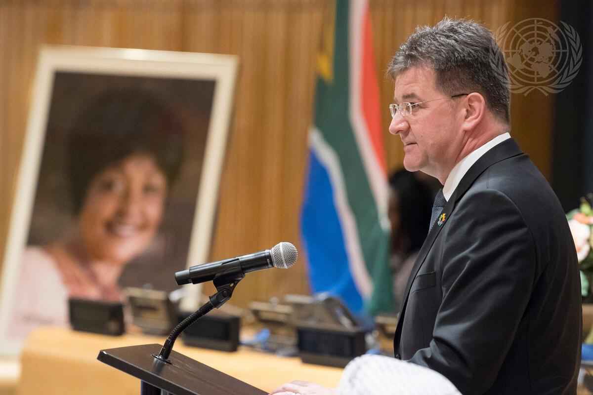Miroslav Lajcák, President of the seventy-second session of the General Assembly, makes remarks during a Special Memorial Service to honour Winnie Madikizela-Mandela. Mrs. Madikizela-Mandela, who passed away 2 April, was a South African anti-apartheid activist and politician, and the ex-wife of Nelson Mandela.