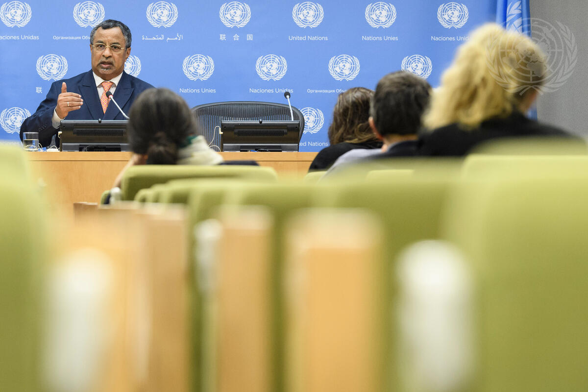 Mahamat Saleh Annadif, Special Representative of the Secretary-General and Head of the United Nations Multidimensional Integrated Stabilization Mission in Mali (MINUSMA), briefs journalists following a Security Council meeting and consultations on the situation in Mali.