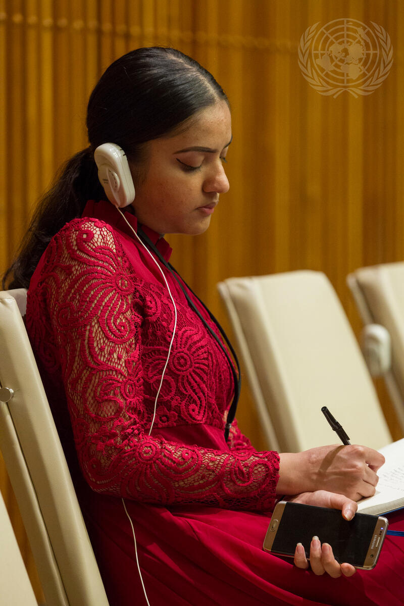 Participant at an interactive dialogue on the theme “Indigenous Peoples’ Right to Education” held on the occasion of the International Day of the World’s Indigenous Peoples (9 August). The event was co-organized by the Secretariat of the United Nations Permanent Forum on Indigenous Issues, Division for Social Policy and Development (DSPD), Department of Economic and Social Affairs (DESA); and the Department of Public Information (DPI).