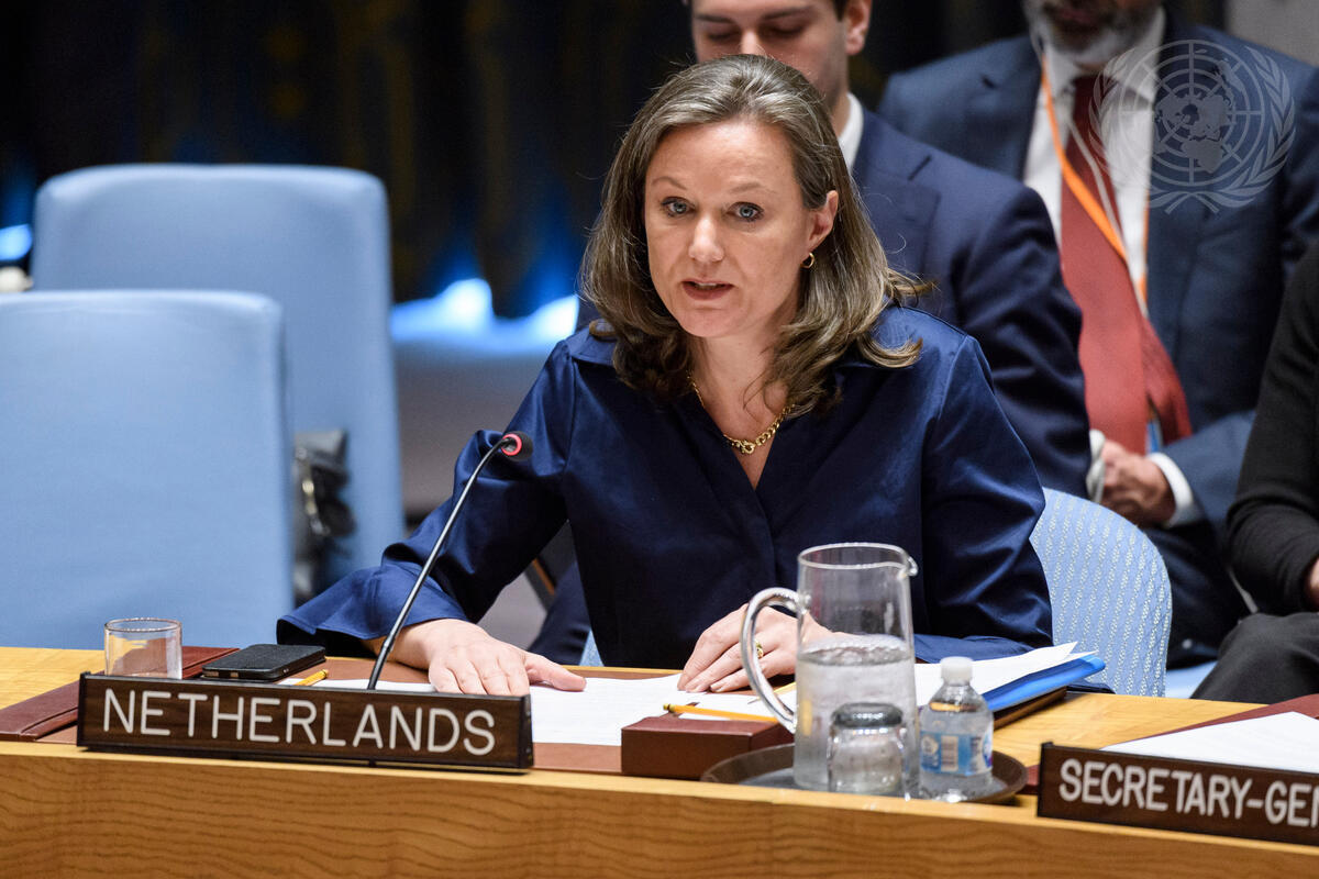 Lise Gregoire Van Haaren, Deputy Permanent Representative of the Netherlands to the UN, addresses the Security Council meeting on threats to international peace and security in relation to the situation in the Middle East, specifically Syria.