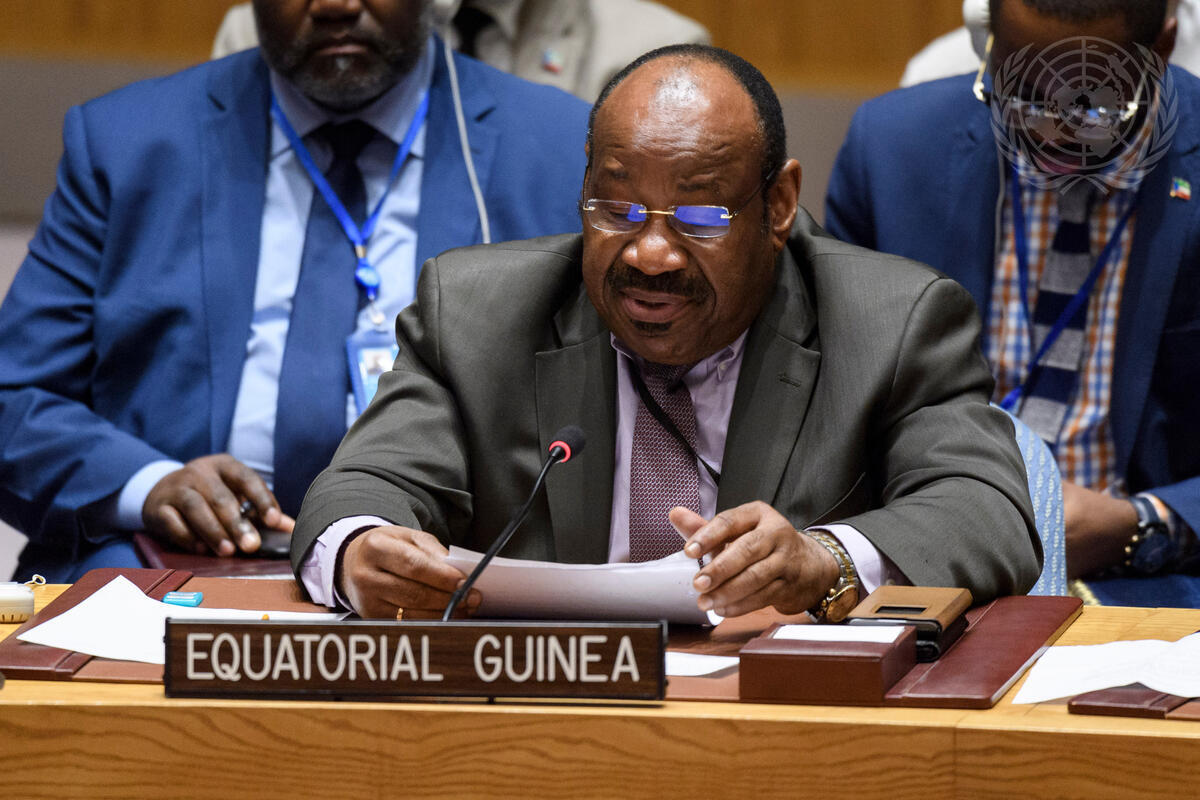 Anatolio Ndong Mba, Permanent Representative of Equatorial Guinea to the UN, addresses the Security Council meeting on threats to international peace and security in relation to the situation in the Middle East, specifically Syria.