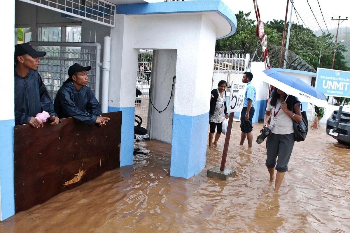 The main compound of the United Nations Integrated Mission in Timor-Leste (UNMIT), in Timorese capital Dili, is flooded by heavy rains