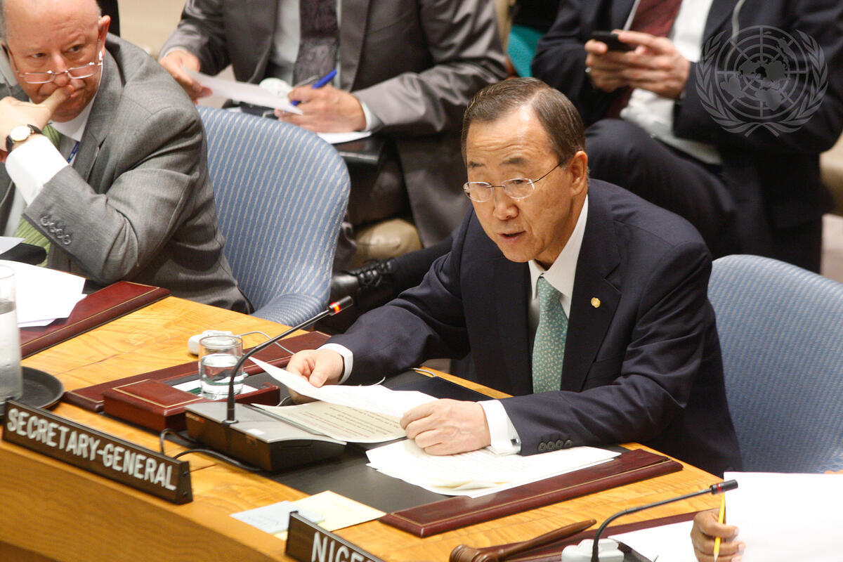 Secretary-General Ban Ki-moon addresses a meeting of the Security Council on the protection of civilians in armed conflict.