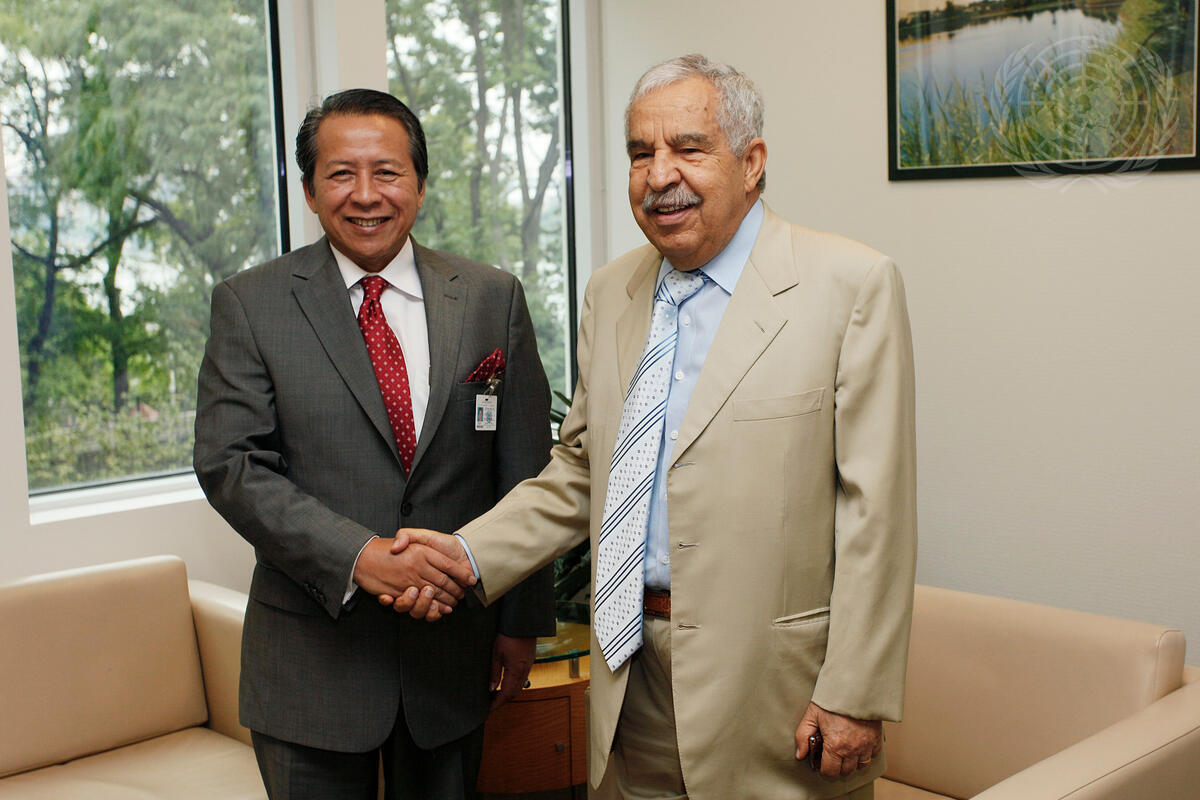 Ali Abdussalam Treki (right), President of the sixty-fourth session of the General Assembly, meets with Datuk Anifah bin Haji Aman, Minister for Foreign Affairs of Malaysia.