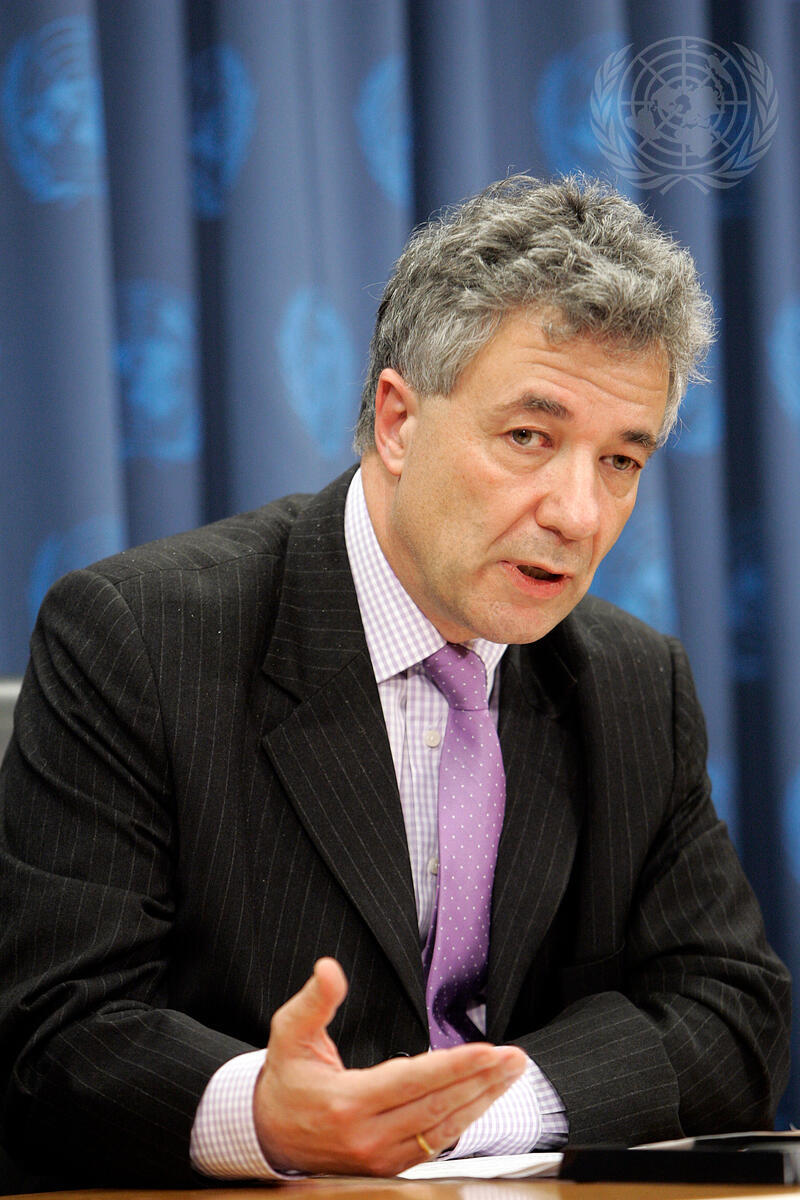 Thomas Mayr-Harting, Permanent Representative of Austria to the United Nations and Chairman of the Security Council Al-Qaida and Taliban Sanctions Committee, addresses a press conference.