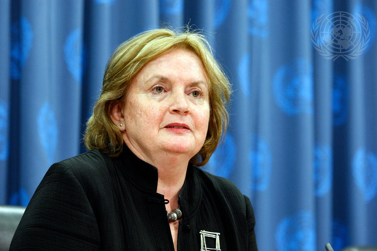 Carolyn Hannan, Director of the Division for the Advancement of Women of the UN's Department for Economic and Social Affairs, speaks at a press conference for the launch of her division's 2009 World Survey on the Role of Women in Development, whose theme this year is ""Women's control over economic resources and access to financial resources, including microfinance"".