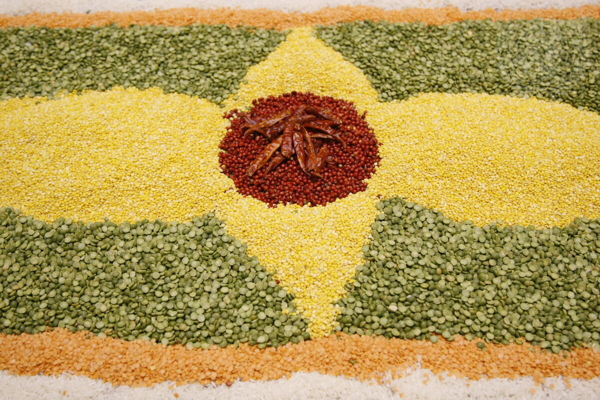 Pictured is an arrangement of dried foods during the Economic and Social Council (ECOSOC)'s World Food Day observance on the theme ""Achieving food security in times of crisis"", at UN Headquarters, New York.