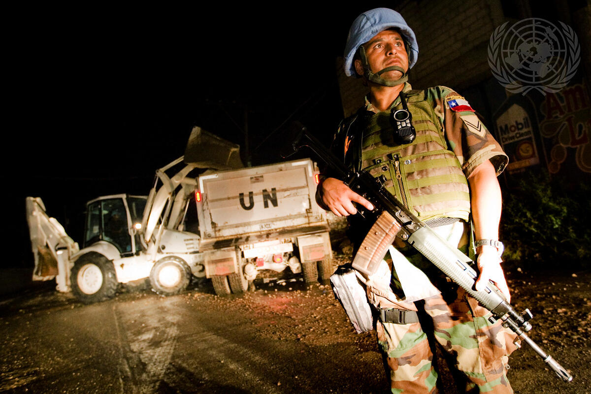 Chilean and Ecuadorean military engineers with the United Nations Stabilization Mission in Haiti (MINUSTAH) remove rubble from a street in Port-au-Prince, Haiti. The Mission is working with national and international agencies to clear any remaining debris blocking the city’s roads.