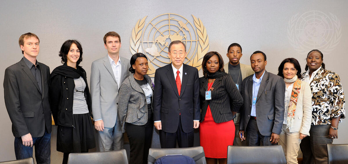 Secretary-General Ban Ki-moon (fifth from left) meets with the participants of the 2010 UN Reham al-Farra Memorial Journalists’ Fellowship Programme.