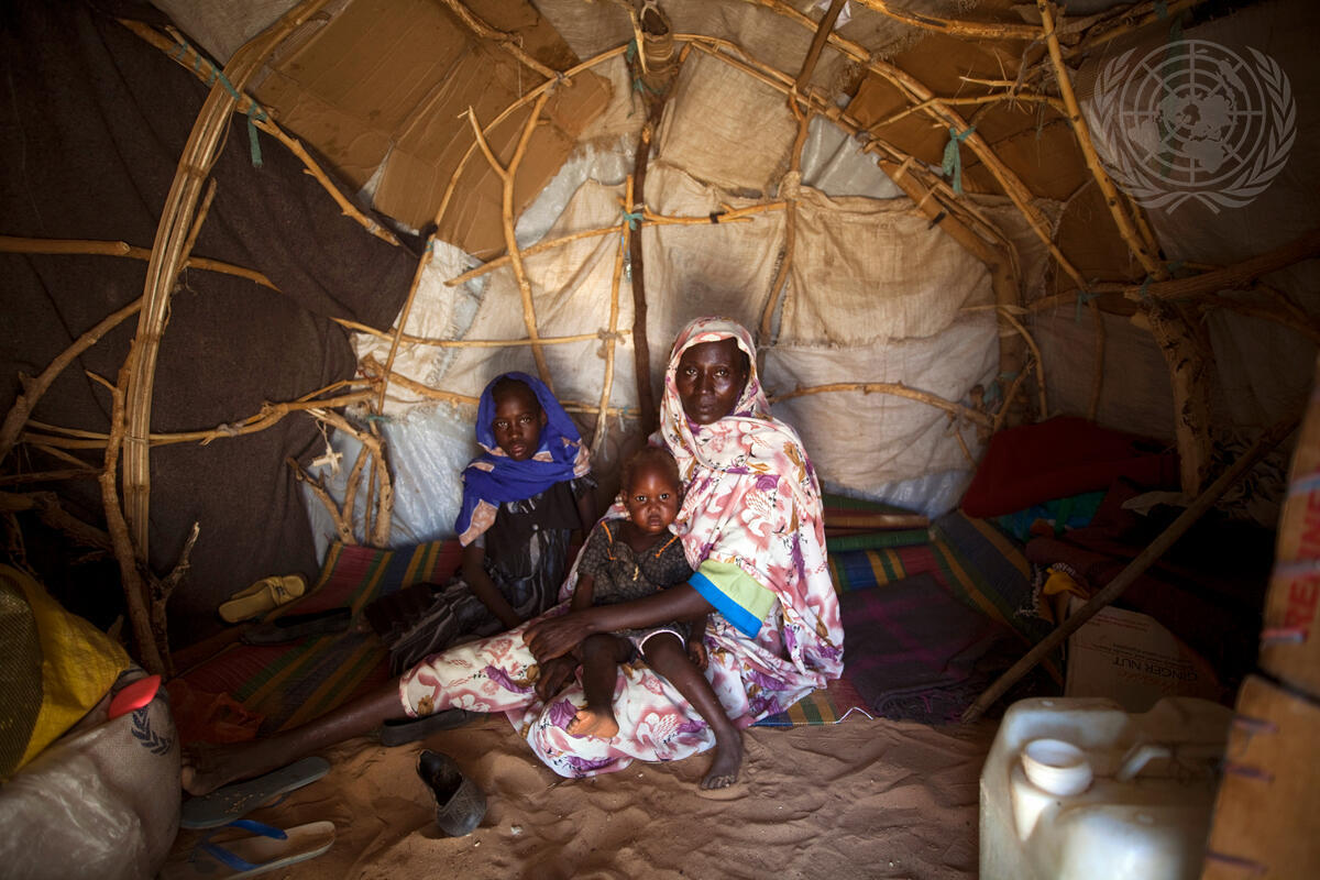 Ashia Suleiman Abbackar (right) is among a group of newly displaced Sudanese who have fled the towns of Fanga and Taraba, and are now settling near the African Union-United Nations Hybrid Operation in Darfur (UNAMID)’s compound in Tawila, North Darfur. She is pictured with two of her seven children, Shadia (left) and Fatna.