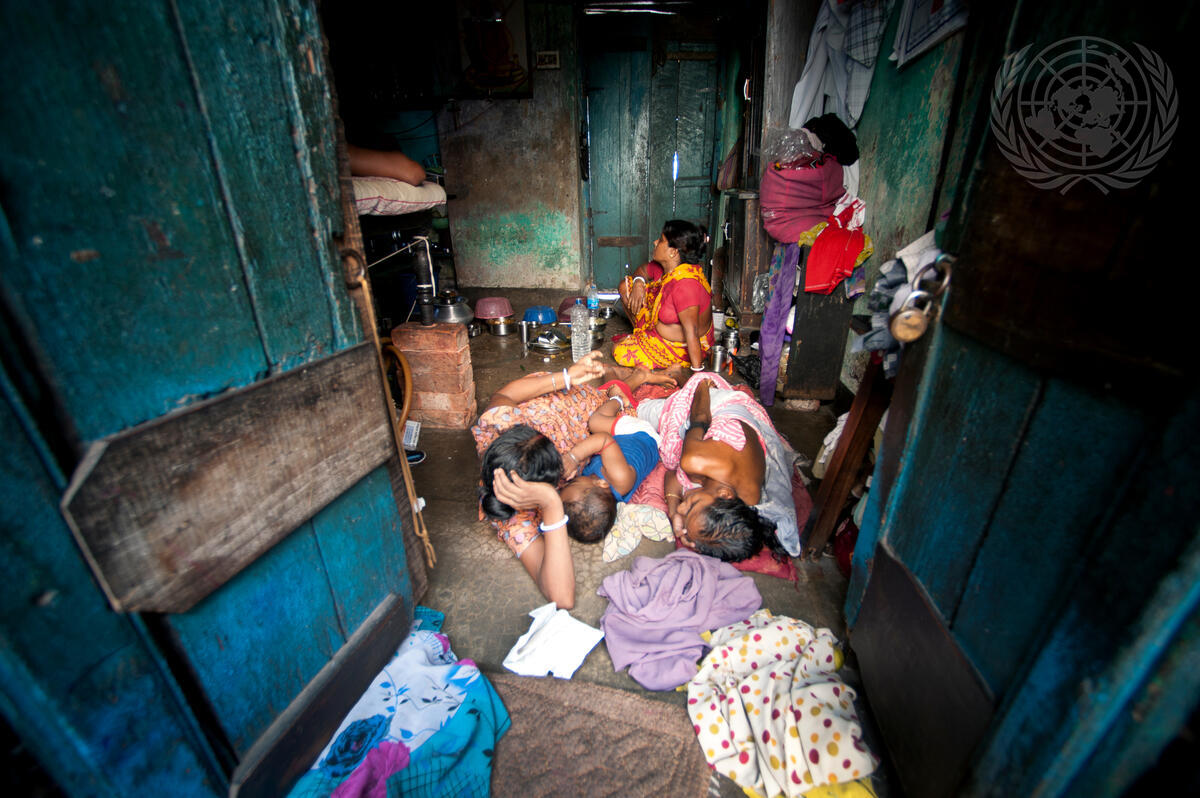 A family living in an urban slum in Sonagachi.