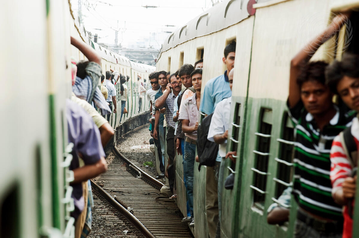 A view of passengers aboard trains connecting the suburbs of Kolkata, India. The Asia-Pacific region is urbanizing rapidly with 1.77 billion people, 43% of the region's population, living in urban areas.