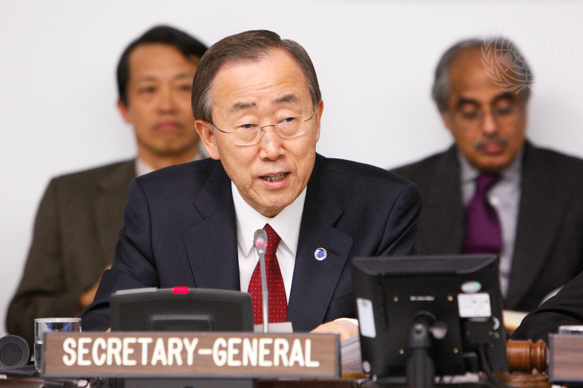 Secretary-General Ban Ki-moon addresses an informal pre-G20 Summit meeting at UN Headquarters, a precursor to the November 2010 Group of 20 industrialized and developing nations summit in Seoul, Republic of Korea.