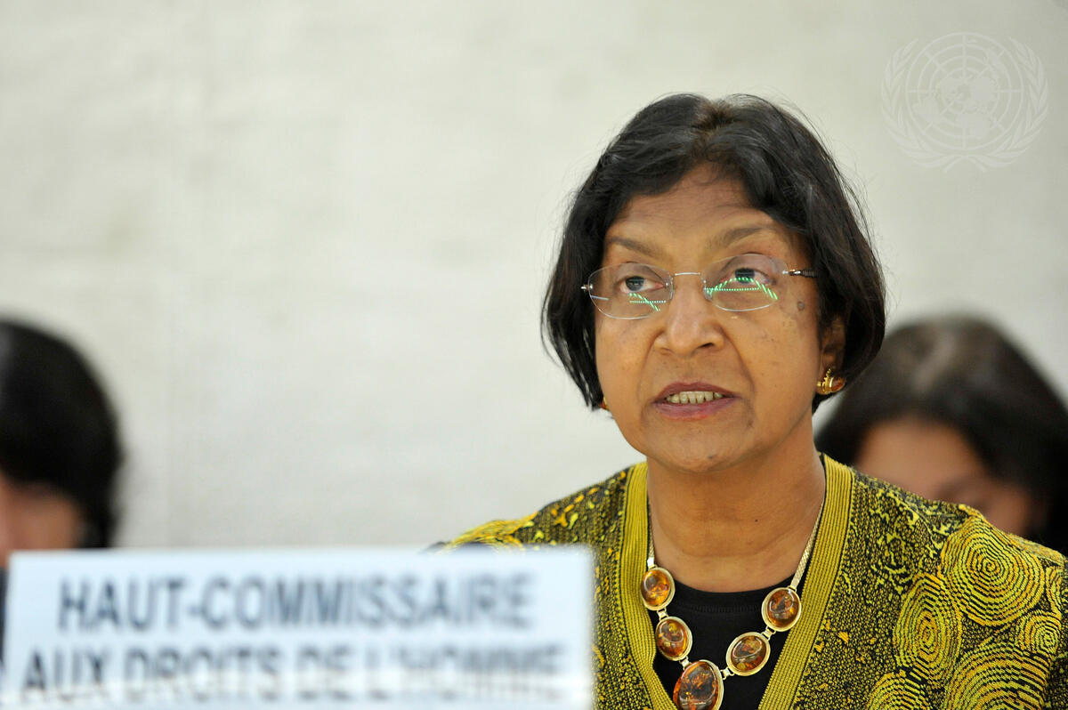 Navi Pillay, United Nations High Commissioner for Human Rights, addresses the United Nations Human Rights Council during the presentation of the report of the United Nations Fact-Finding Mission on the Gaza Conflict.