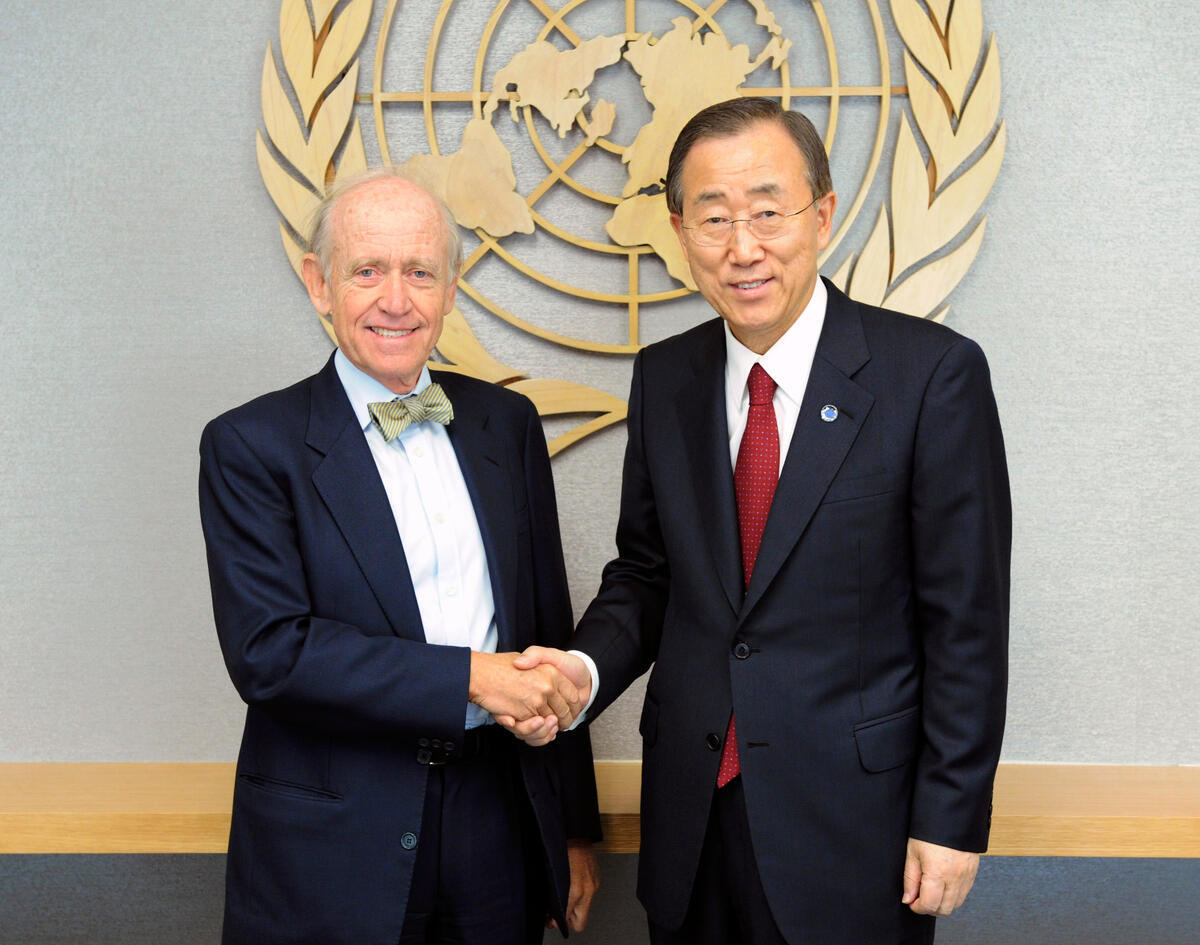 Secretary-General Ban Ki-moon (right) bids farewell to Carlo Trezza, outgoing Chair of the UN Advisory Board on Disarmament Matters.