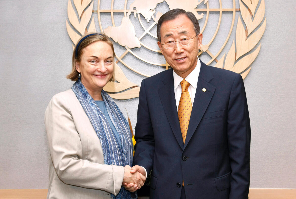 Secretary-General Ban Ki-moon (right) meets with Lisa Buttenheim, his Special Representative for Cyprus and Head of the United Nations Peacekeeping Force in Cyprus (UNFICYP).