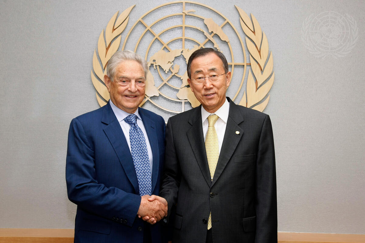 Secretary-General Ban Ki-moon (right) meets with George Soros, Founder of Soros Fund Management.