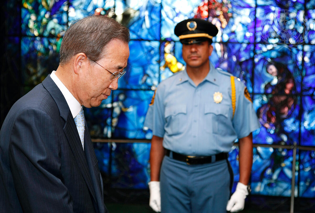 Secretary-General Ban Ki-moon silently mourns colleagues who perished in the bombing of the United Nations Office in Baghdad on 19 August, 2003. The anniversary of that tragic event is used to commemorate World Humanitarian Day.