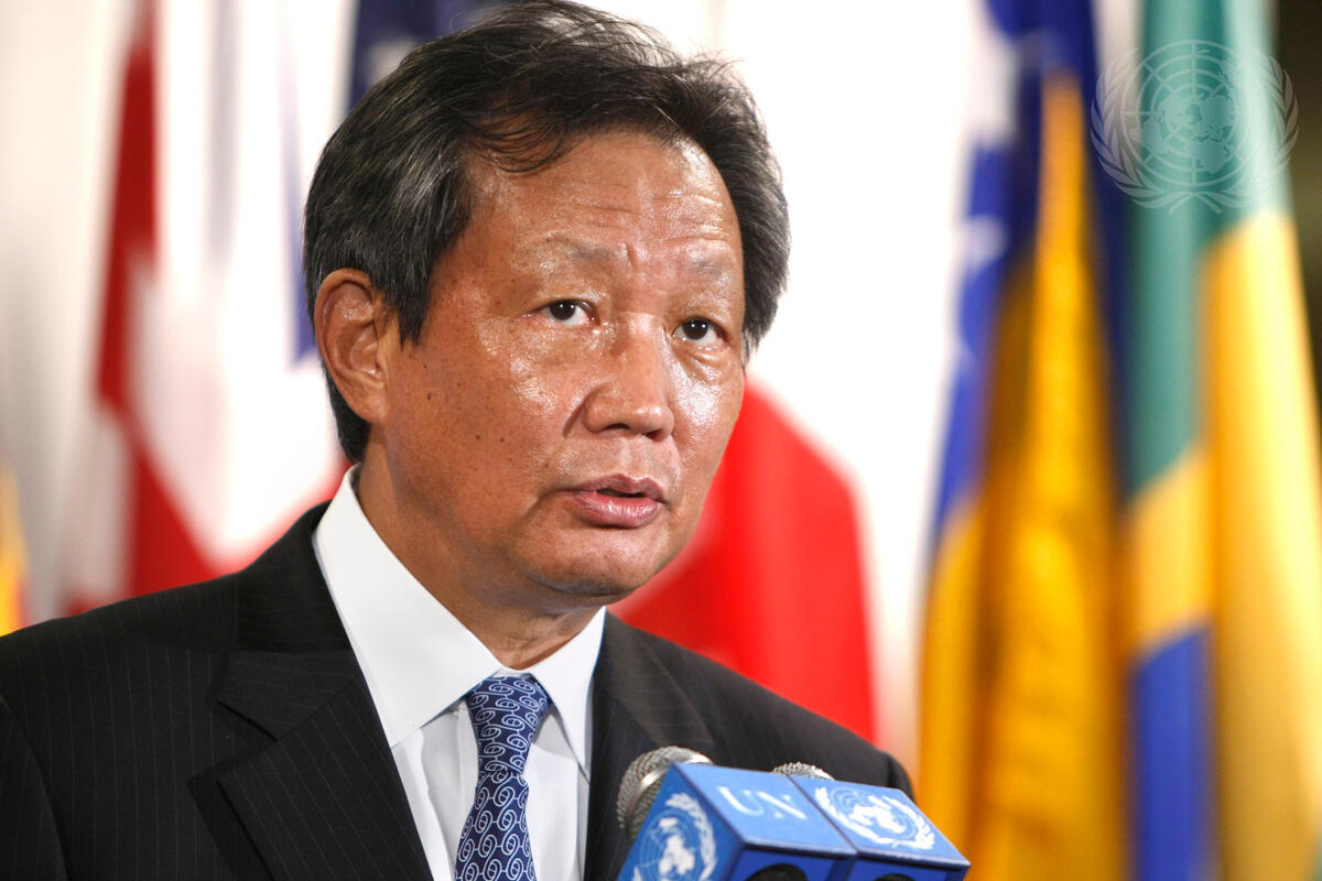 Choi Young-Jin, Special Representative of the Secretary-General for Côte d'Ivoire, speaks with journalists following his briefing to the Security Council on the status of elections in that country, due to take place at the end of October 2010.