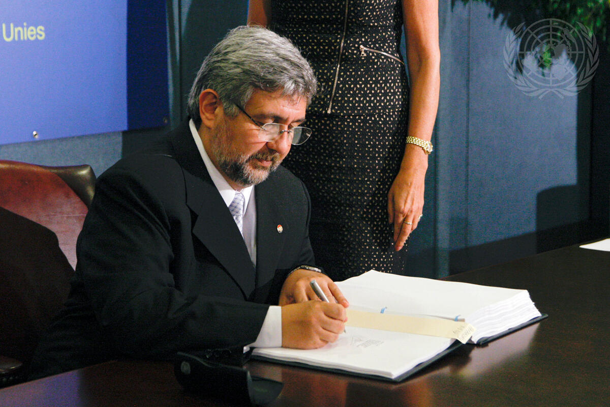 Héctor Lacognata, Minister for Foreign Affairs of Paraguay, signs the International Tropical Timber Agreement.