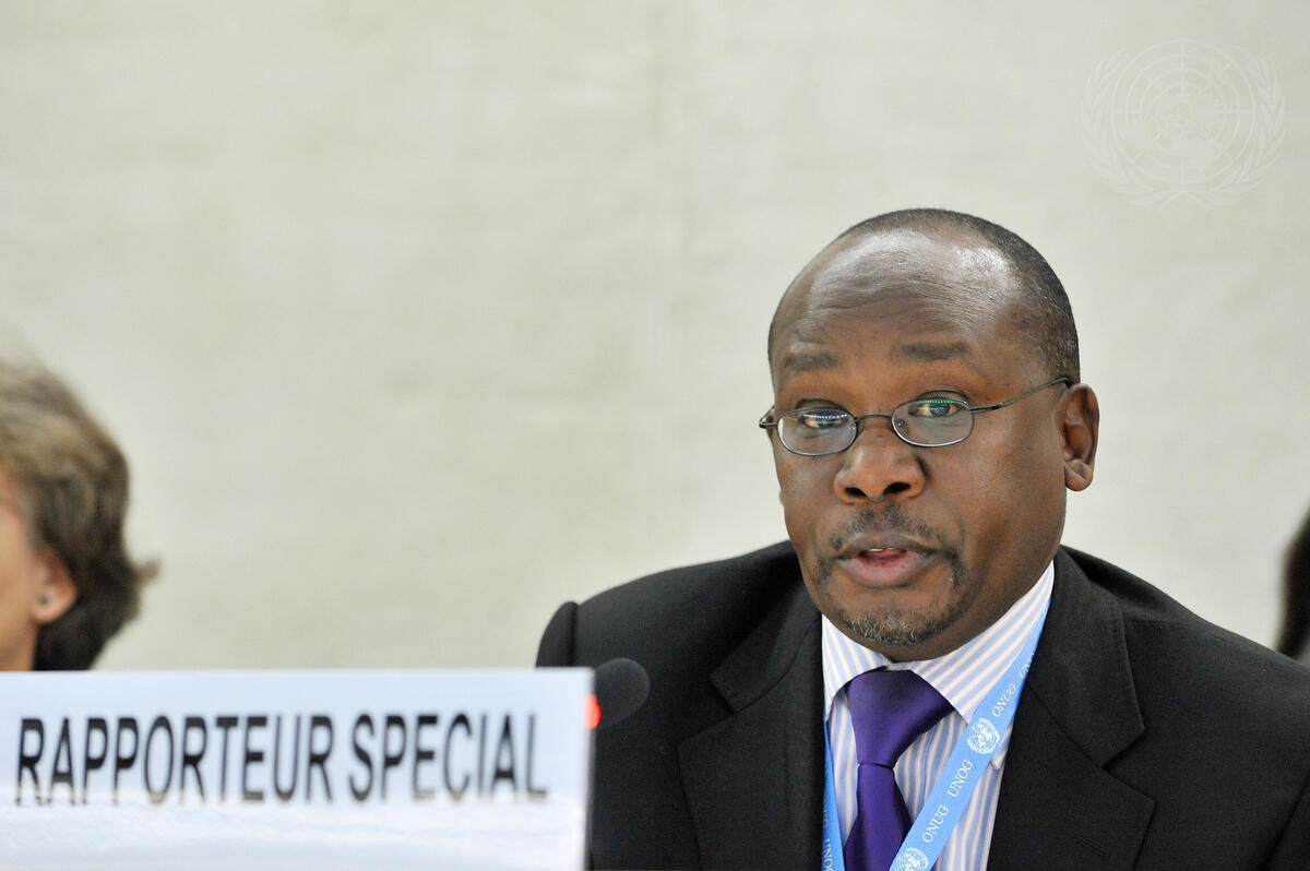 Githu Muigai, Special Rapporteur on Contemporary Forms of Racism, Racial Discrimination, Xenophobia and Related Intolerance, briefs the Human Rights Council.